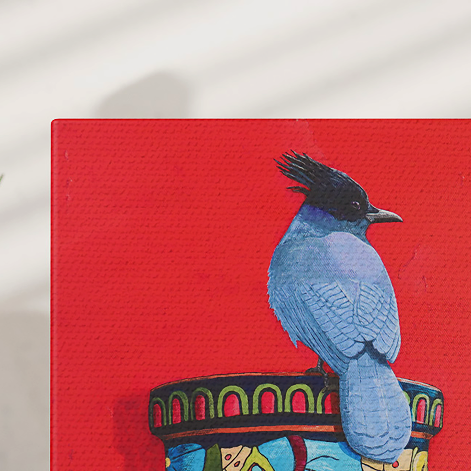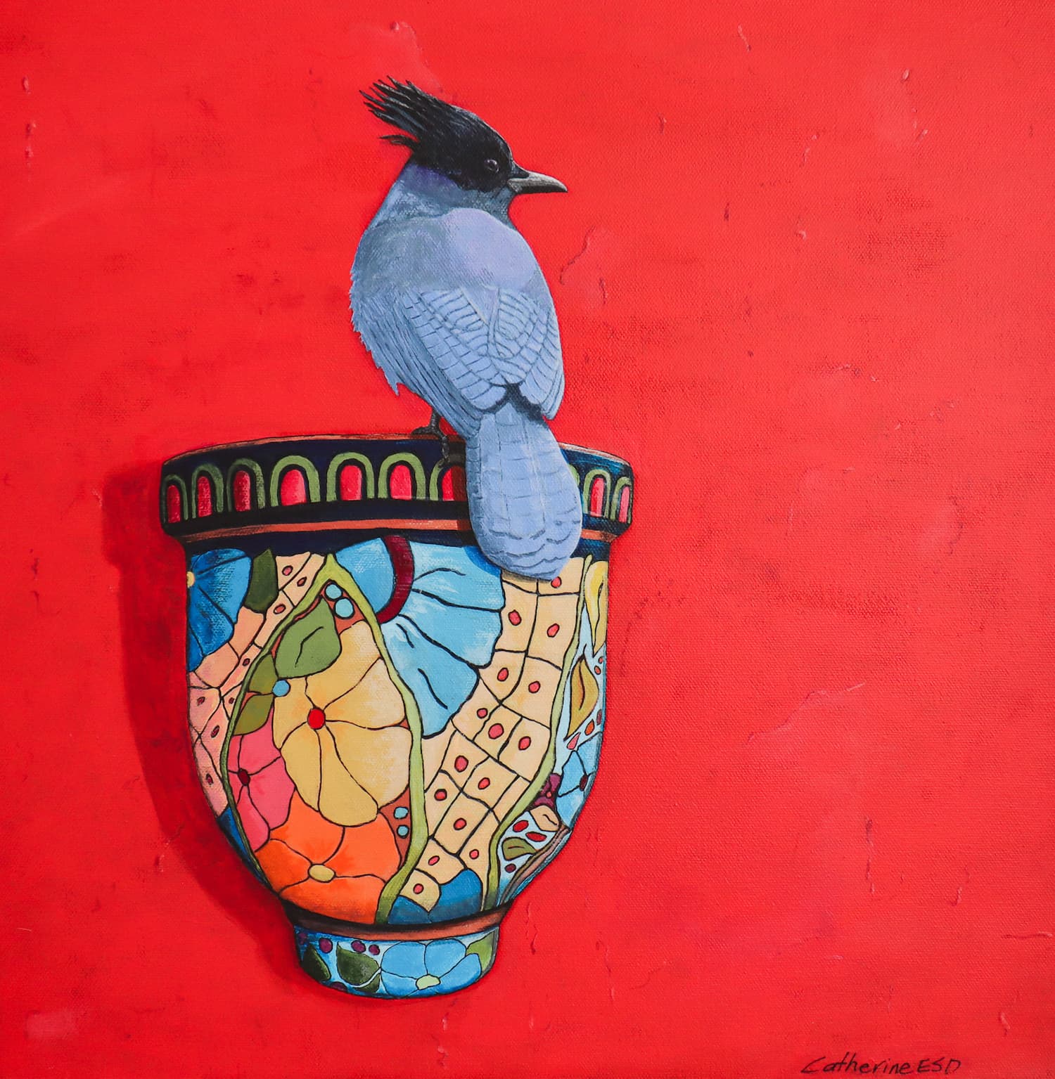 BC's Stellar Jay does not roam. Always stays among the pines and earth-coloured homes. But...does he dream of warm southern climes where the walls are bright and the pots are festive and the music is jaunty like his happy chatter?