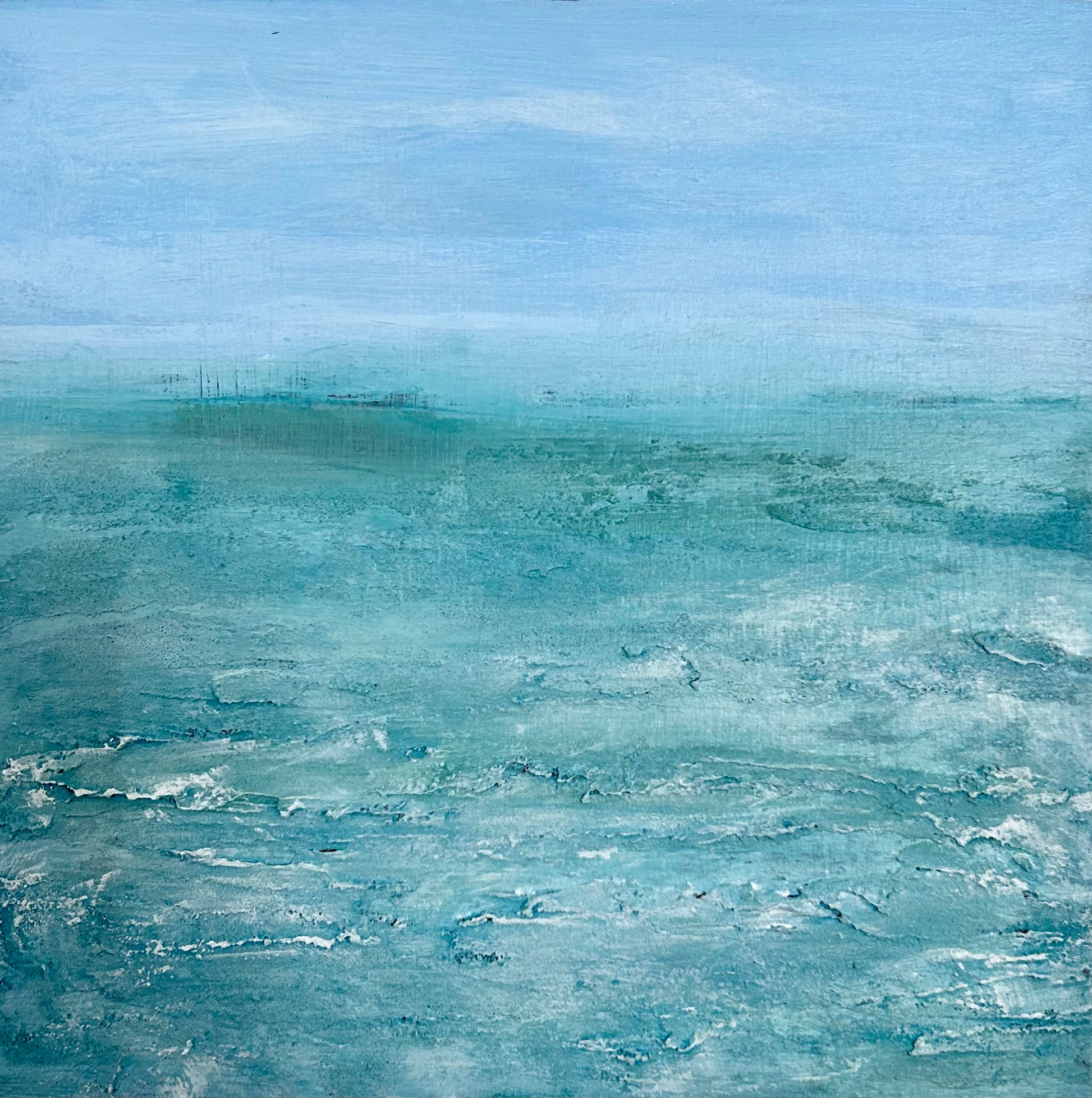 Acrylic paint and molding paste on wood panel. 6" x 6" x 1.5"