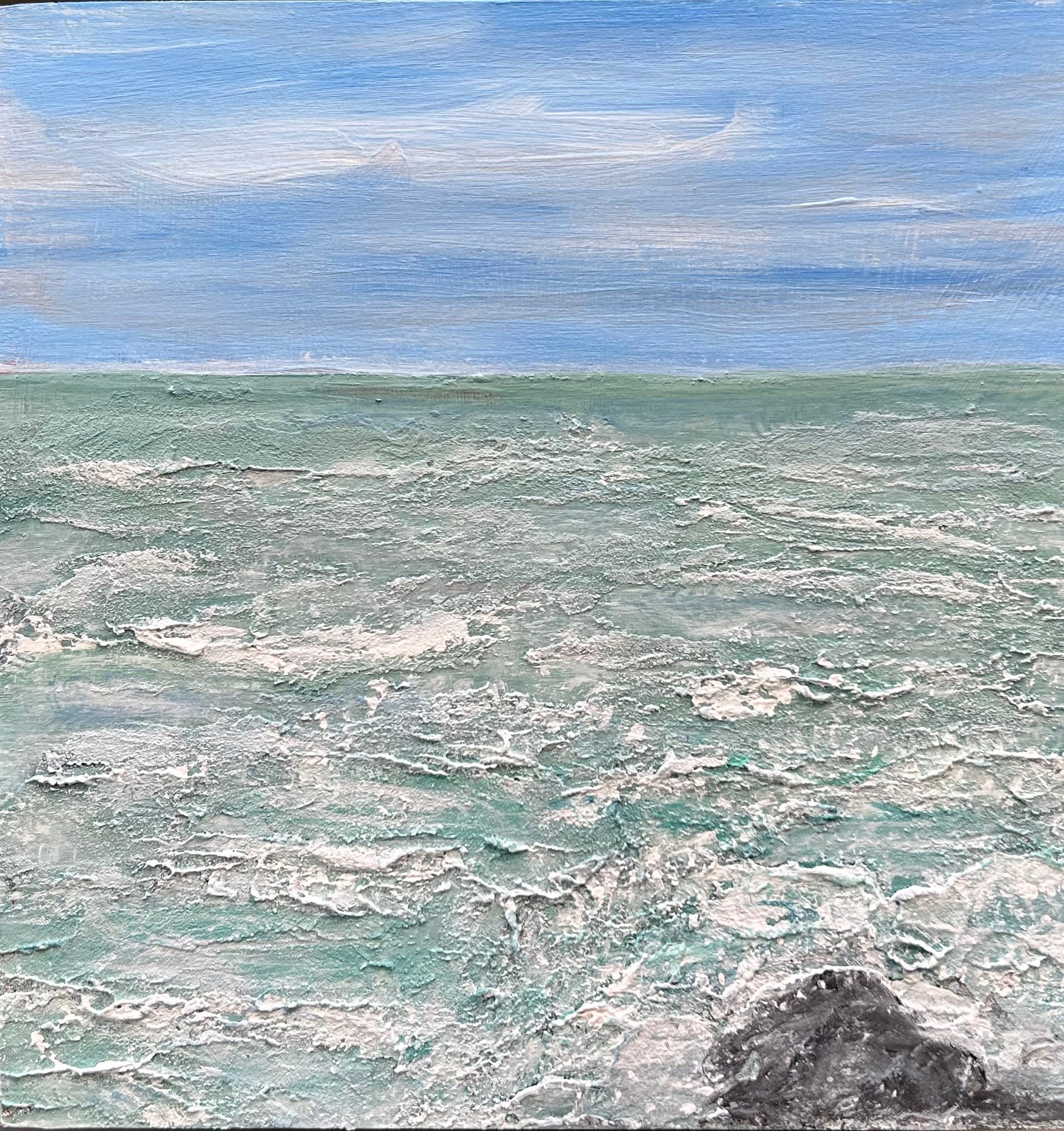 Acrylic and molding paste on wood panel. 6" x 6" x 1.5"